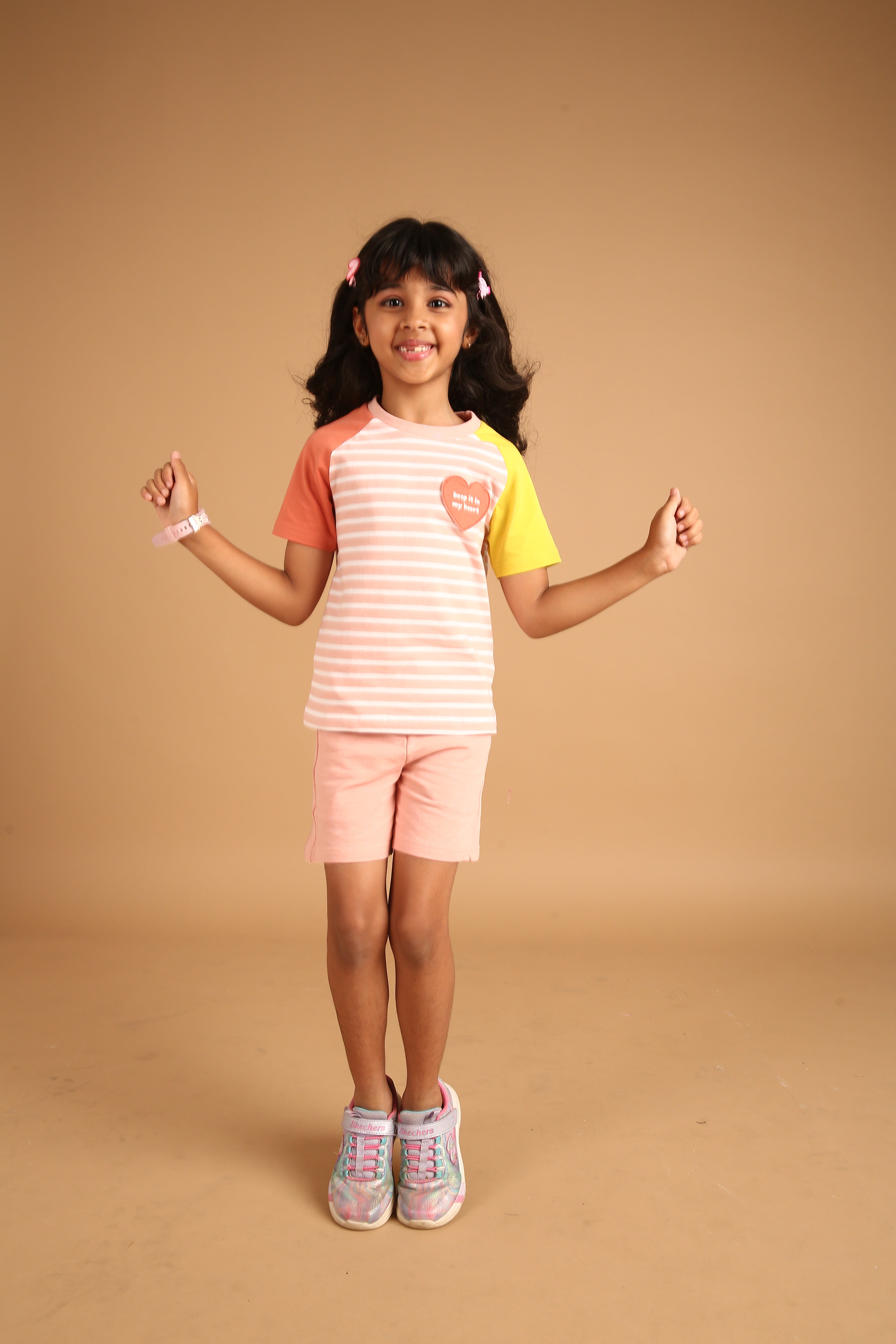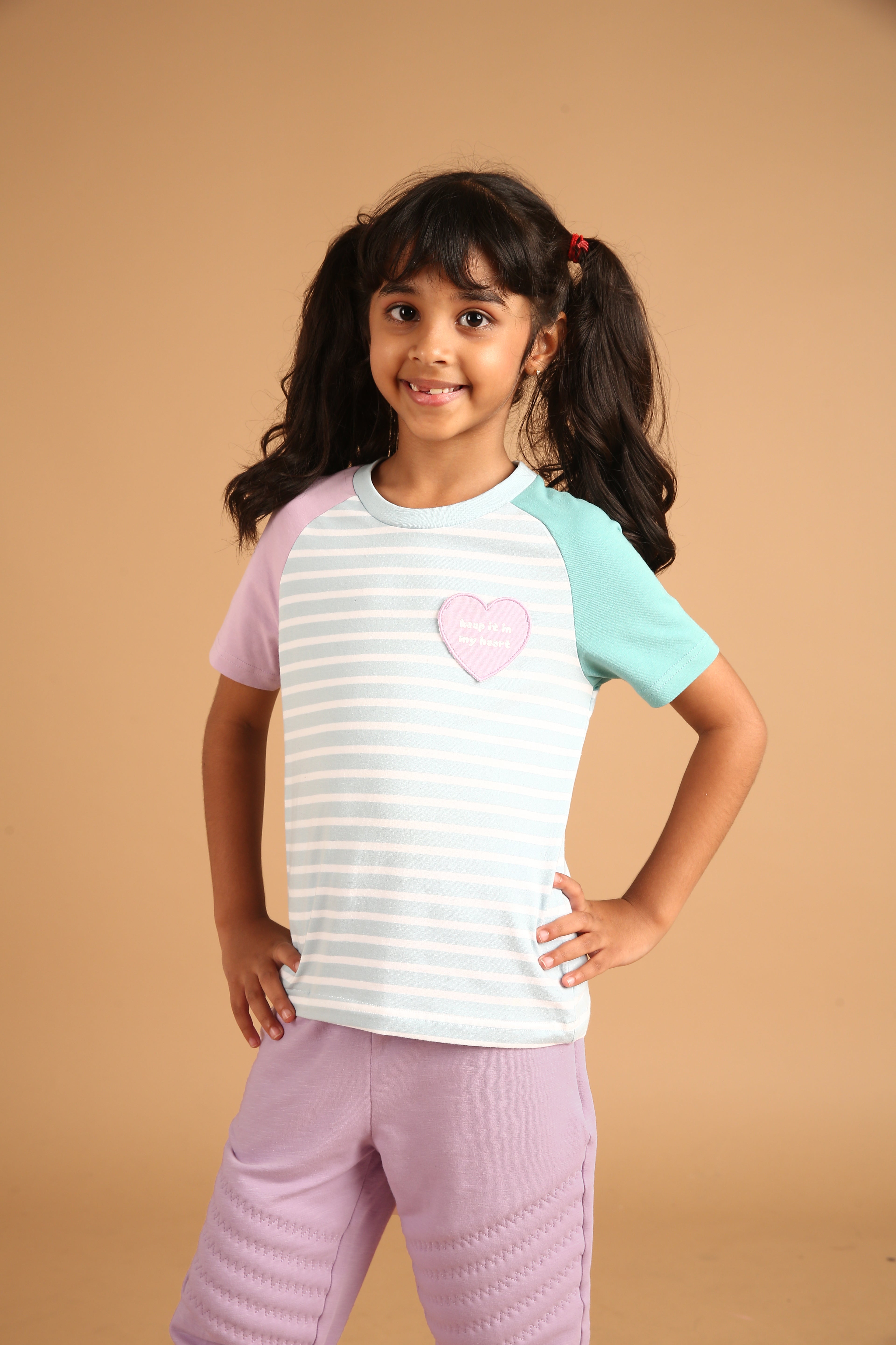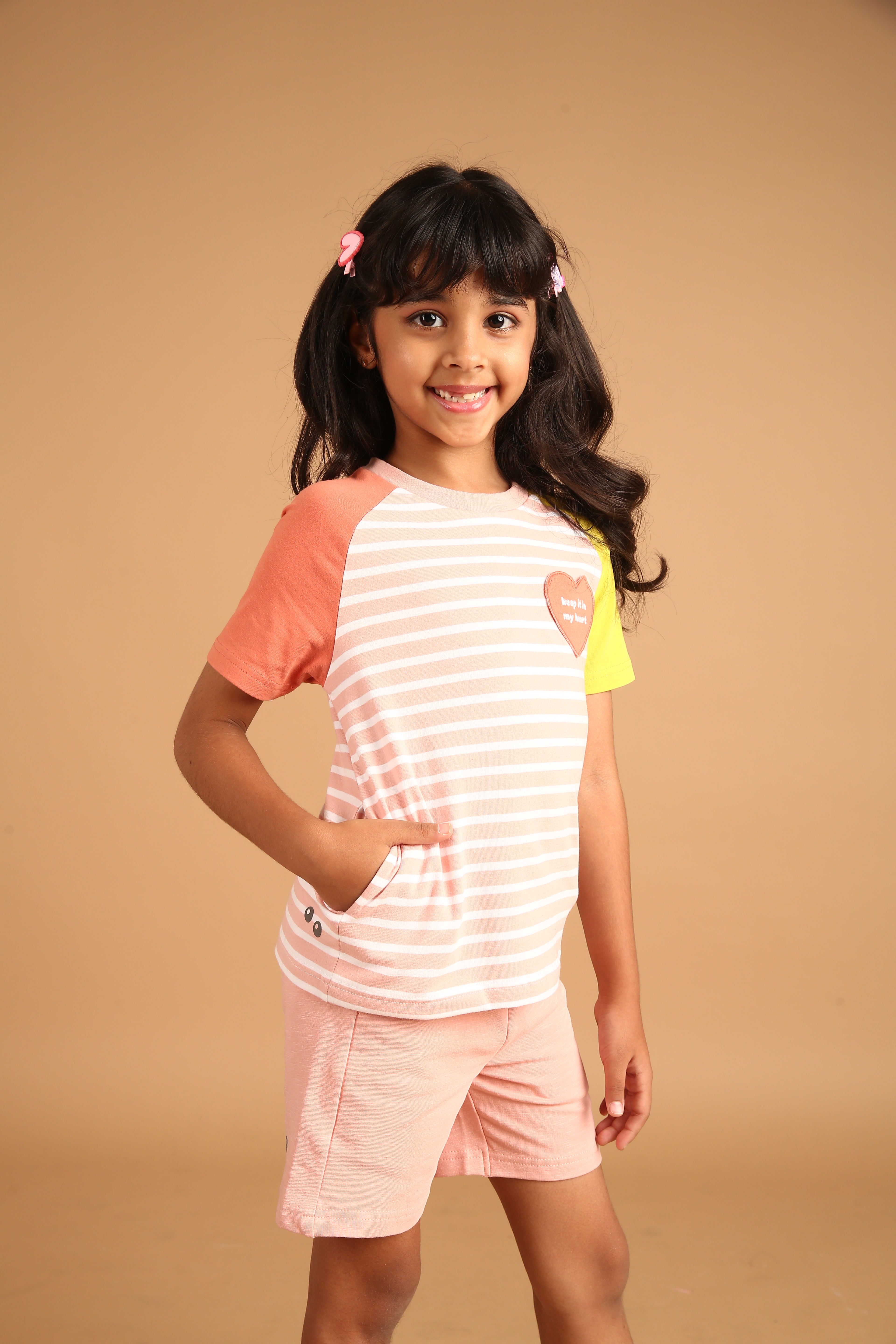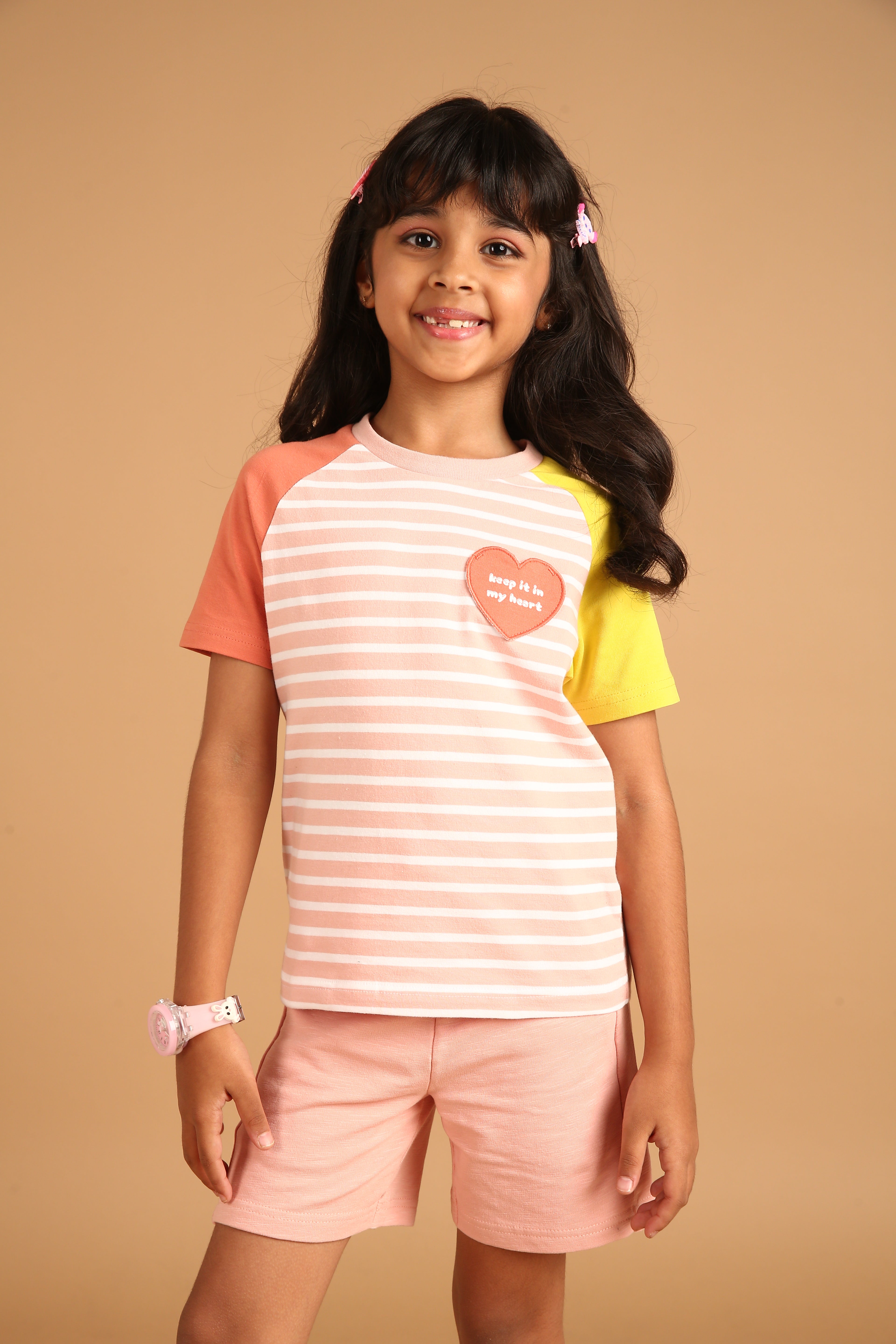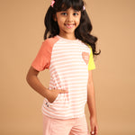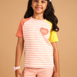 SKU: 083A - Pilolo My Heart Pink Stripped Cotton Pocket T-Shirt For Girls