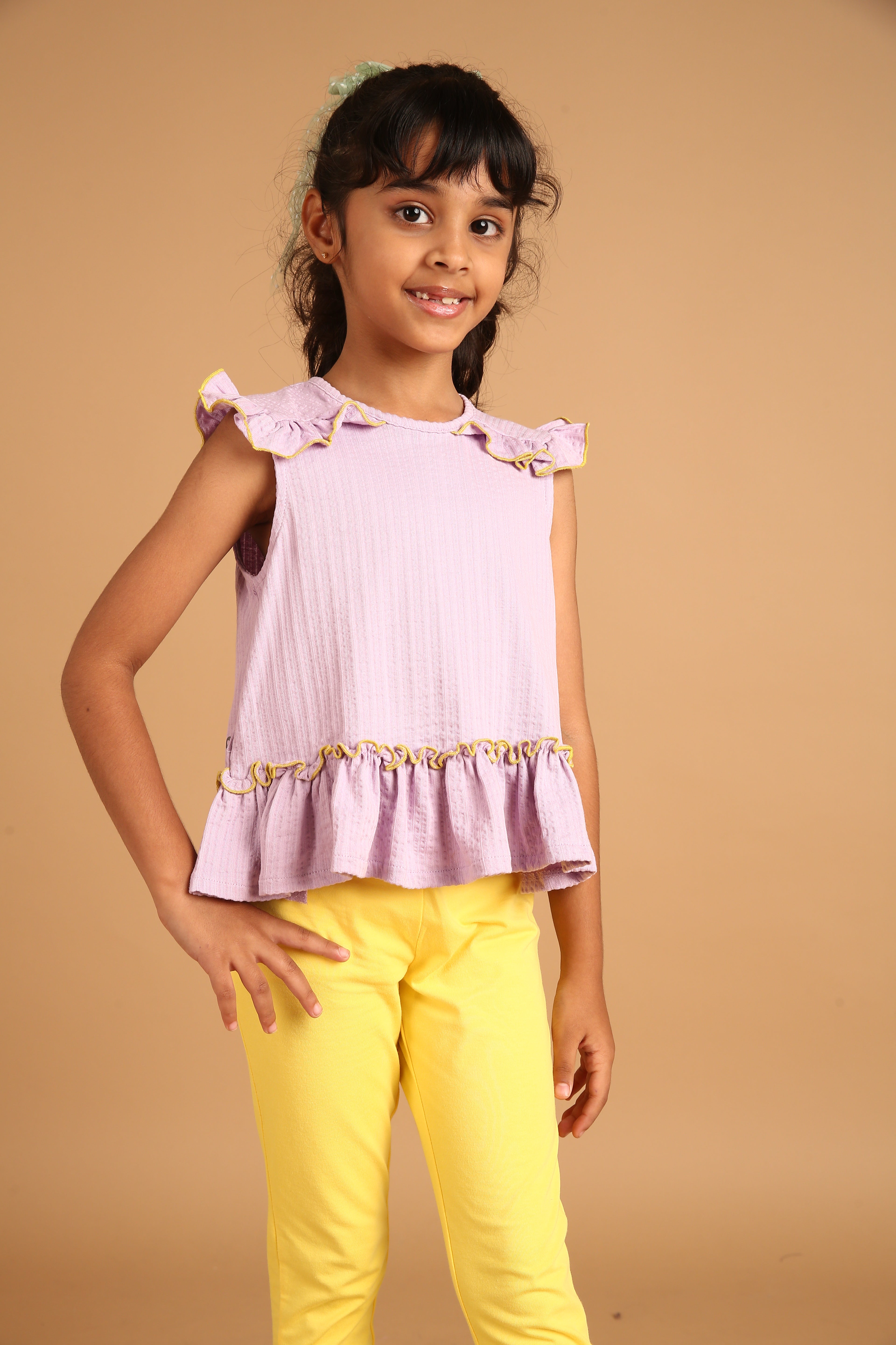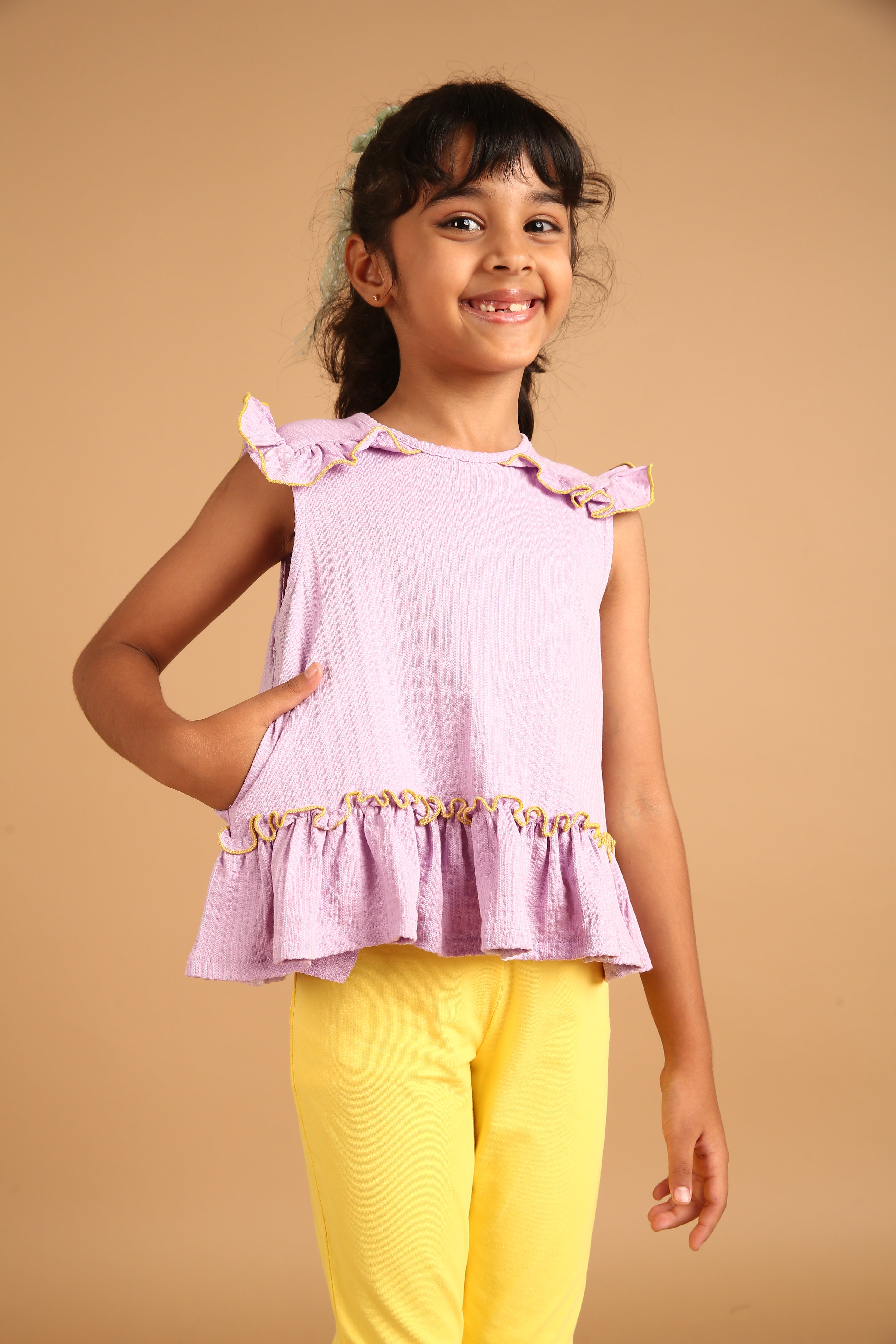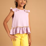 SKU: 093B - Pilolo Lavender Ruffle Sleeveless Pocket Crop Top For Girls