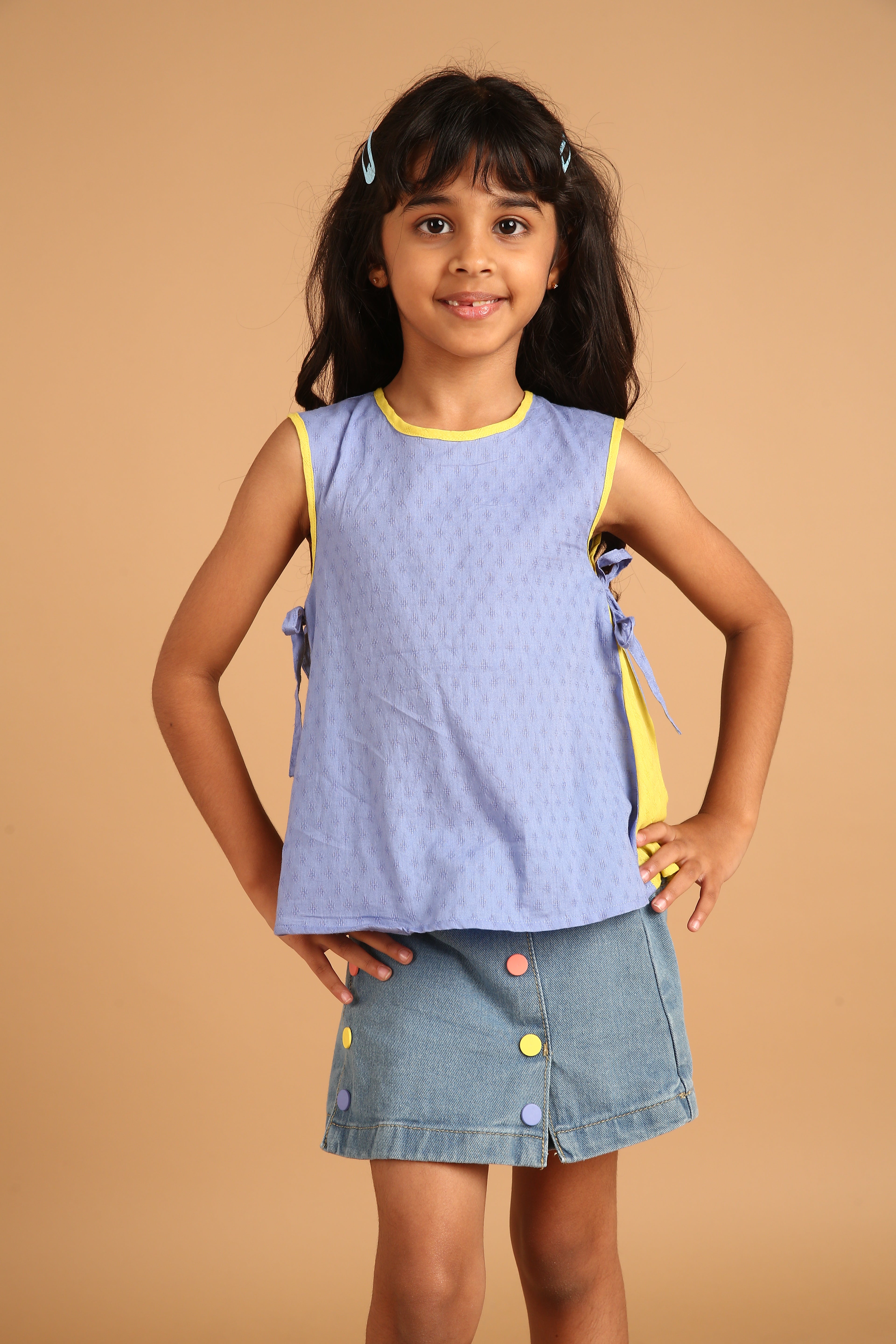 SKU: 094A - Pilolo Pleated Grow Wedge Wood Woven Pocket Top for Girls