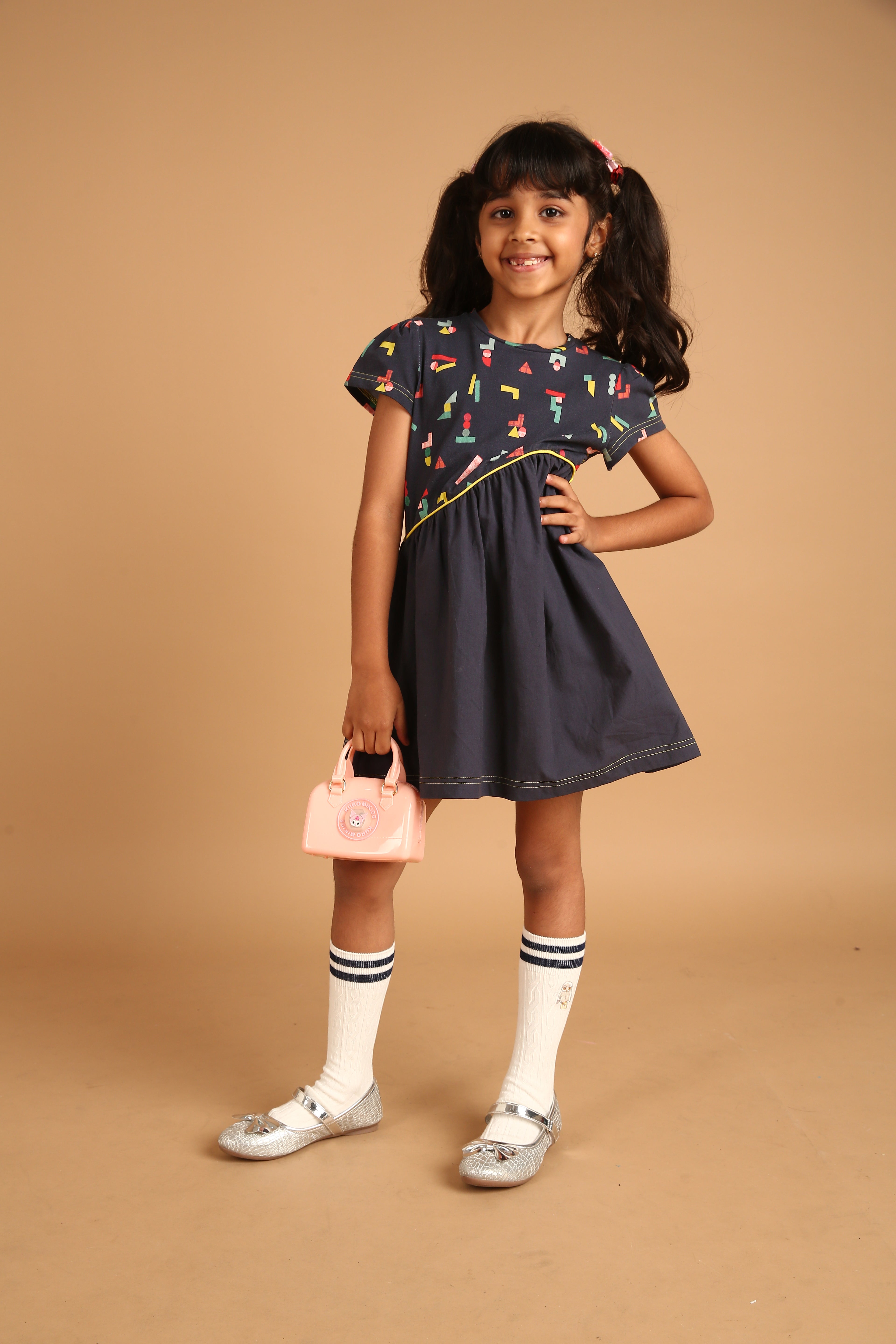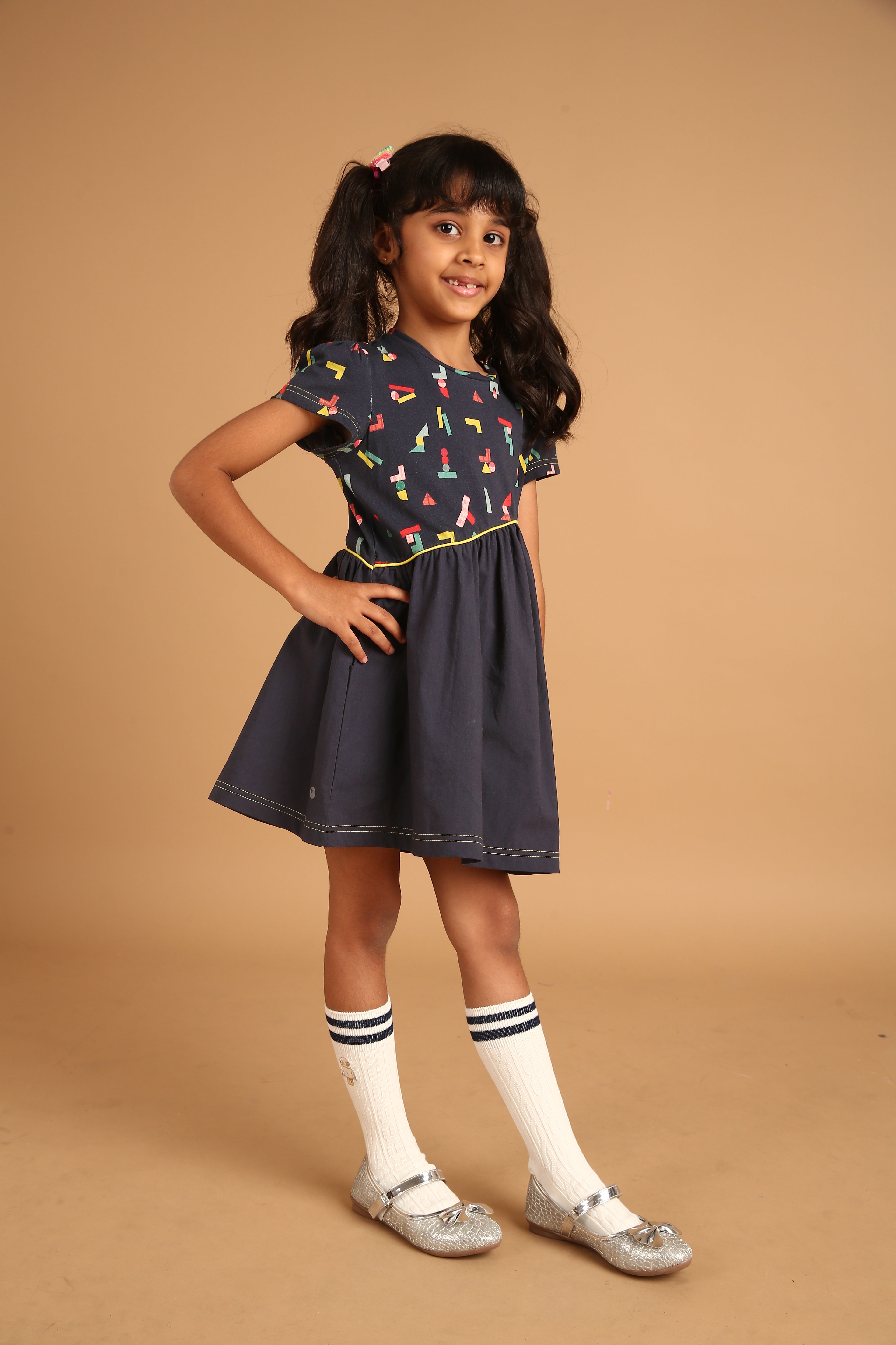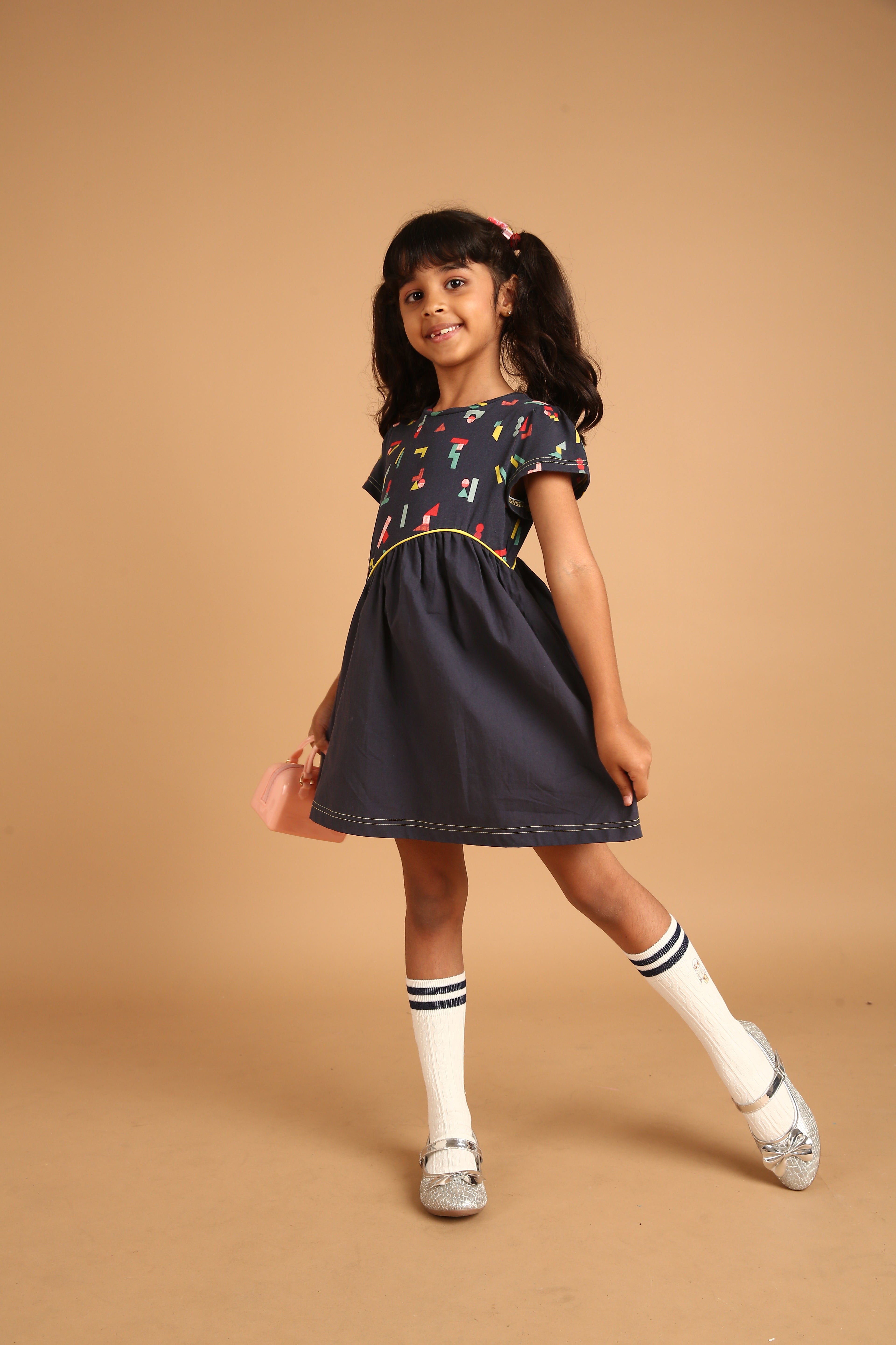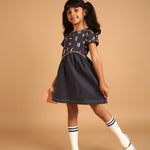 SKU: 112 - Pilolo Wave Waist Outer Space Printed Pocket Fashion Dress For Girls