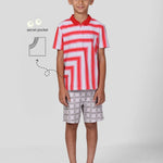 The Pilolo Stripe Out Polo draws inspiration from the art of origami to create an eye-catching illusion with contrasting stripes. This unique boys' t-shirt is designed with a collared neck and zip detailing, adding both style and functionality for endless playtime adventures. As with all Pilolo garments, this polo tee features our signature pocket, perfect for carrying tiny treasures and keeping them safe. Hidden inside is a surprise gift, making the Stripe Out Polo even more special and exciting for your child. Crafted from a high-quality blend of 95% cotton and 5% elastane, this tee is soft, stretchy, and incredibly comfortable. The single jersey fabric is gentle on the skin, making it ideal for boys aged 4-9. Whether you're looking for a casual outfit, vacation clothes, or something comfy for a day out, the Pilolo Stripe Out Polo fits the bill. It also makes a perfect gift for birthdays, holidays, or any special occasion. Note: For the right fit, please refer to the size chart as sizes may vary from brand to brand.