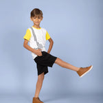 The Pilolo Crossroads T-shirt is a stylish and unique choice for your little boy's wardrobe. This white t-shirt features a contrasting design where stripes and polka dots intersect, creating a playful and eye-catching pattern. Designed for boys aged 4-9, this t-shirt is perfect for those who love to stand out with a fun and fashionable look. As with all Pilolo garments, this t-shirt includes our signature pocket, perfect for carrying tiny treasures and keeping them safe. Hidden inside is a surprise gift, making the Crossroads T-shirt even more special and exciting for your child. Crafted from a premium fabric blend of 95% cotton and 5% elastane, this t-shirt is soft, stretchy, and incredibly comfortable. The fabric is gentle on the skin, ensuring your child can move freely and comfortably throughout the day. Whether you're looking for a casual outfit that stands out, something unique for a day out, or a special gift, the Pilolo Crossroads T-shirt fits the bill. It also makes a perfect gift for birthdays, holidays, or any special occasion. Note: For the right fit, please refer to the size chart as sizes may vary from brand to brand.