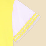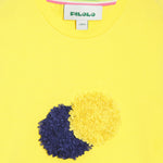 The Pilolo Flower Power Tee is a lively and playful addition to your little girl's wardrobe. This yellow t-shirt features exaggerated pompoms, ric-rac embroidered oversized polka dots, and tulle sleeves with a ric-rac border, creating a fun and vibrant look. Designed for girls aged 4-9, this tee is perfect for making a bold fashion statement. As with all Pilolo garments, this t-shirt includes our signature pocket, perfect for carrying tiny treasures and keeping them safe. Hidden inside is a surprise gift, making the Flower Power Tee even more special and exciting for your child. Crafted from a premium fabric blend of 95% cotton and 5% elastane, this t-shirt is soft, stretchy, and incredibly comfortable. The fabric is gentle on the skin, ensuring your child can move freely and comfortably throughout the day. Whether you're looking for a standout outfit for a day out, something special for playtime, or a unique gift, the Pilolo Flower Power Tee fits the bill. It also makes a perfect gift for birthdays, holidays, or any special occasion. Note: For the right fit, please refer to the size chart as sizes may vary from brand to brand.