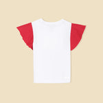 The Pilolo Popcorn Tee is a fun and playful addition to your little girl's wardrobe. Inspired by a childhood favorite snack, this white t-shirt is detailed with vibrant red ruffle sleeves, adding a touch of whimsy and style. Designed for girls aged 4-9, this tee is perfect for those who love to express their playful side. As with all Pilolo garments, this t-shirt includes our signature pocket, perfect for carrying tiny treasures and keeping them safe. Hidden inside is a surprise gift, making the Popcorn Tee even more special and exciting for your child. Crafted from a premium fabric blend of 95% cotton and 5% elastane, this t-shirt is soft, stretchy, and incredibly comfortable. The fabric is gentle on the skin, ensuring your child can move freely and comfortably throughout the day. Whether you're looking for a fun outfit for a day out, something special for playtime, or a unique gift, the Pilolo Popcorn Tee fits the bill. It also makes a perfect gift for birthdays, holidays, or any special occasion. Note:For the right fit, please refer to the size chart as sizes may vary from brand to brand.