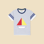 The Pilolo Sailor Ahoy T-shirt is a bright and vibrant addition to your little boy's wardrobe. This blue t-shirt features sailing boat design, adding a playful and adventurous touch. Designed for boys aged 4-9, this t-shirt is perfect for those who love a fun and bold look. As with all Pilolo garments, this t-shirt includes our signature pocket, perfect for carrying tiny treasures and keeping them safe. Hidden inside is a surprise gift, making the Lighthouse T-shirt even more special and exciting for your child. Crafted from a premium fabric blend of 95% cotton and 5% elastane, this t-shirt is soft, stretchy, and incredibly comfortable. The fabric is gentle on the skin, ensuring your child can move freely and comfortably throughout the day. Whether you're looking for a casual outfit that stands out, something unique for a day out, or a special gift, the Pilolo Lighthouse T-shirt fits the bill. It also makes a perfect gift for birthdays, holidays, or any special occasion. Note: For the right fit, please refer to the size chart as sizes may vary from brand to brand.