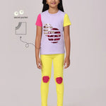 The Pilolo This or That Tee is a fun and interactive addition to your little girl's wardrobe. This yellow t-shirt is embellished with exaggerated two-toned sequined polka dots that change colors when swiped, adding an element of playfulness and creativity to her outfit. Designed for girls aged 4-9, this t-shirt is perfect for those who love to express themselves with a touch of sparkle. As with all Pilolo garments, this t-shirt includes our signature pocket, perfect for carrying tiny treasures and keeping them safe. Hidden inside is a surprise gift, making the This or That Tee even more special and exciting for your child. Crafted from a premium fabric blend of 95% cotton and 5% elastane, this t-shirt is soft, stretchy, and incredibly comfortable. The fabric is gentle on the skin, ensuring your child can move freely and comfortably throughout the day. Whether you're looking for an outfit that stands out, something fun for playtime, or a unique gift, the Pilolo This or That Tee fits the bill. It also makes a perfect gift for birthdays, holidays, or any special occasion. Note: For the right fit, please refer to the size chart as sizes may vary from brand to brand.