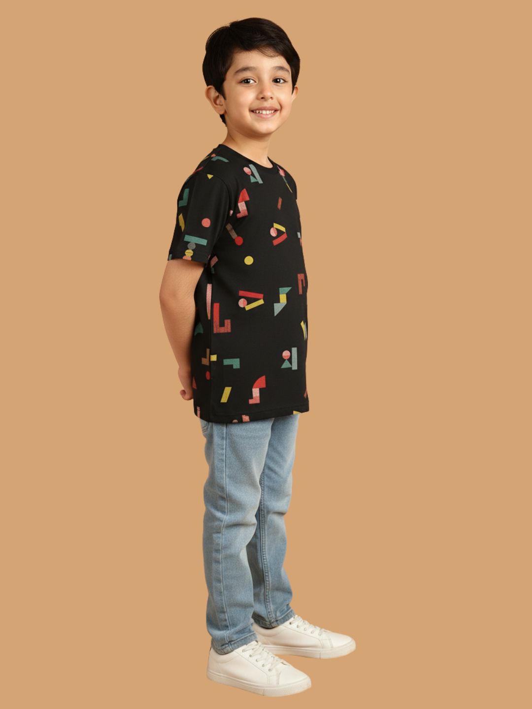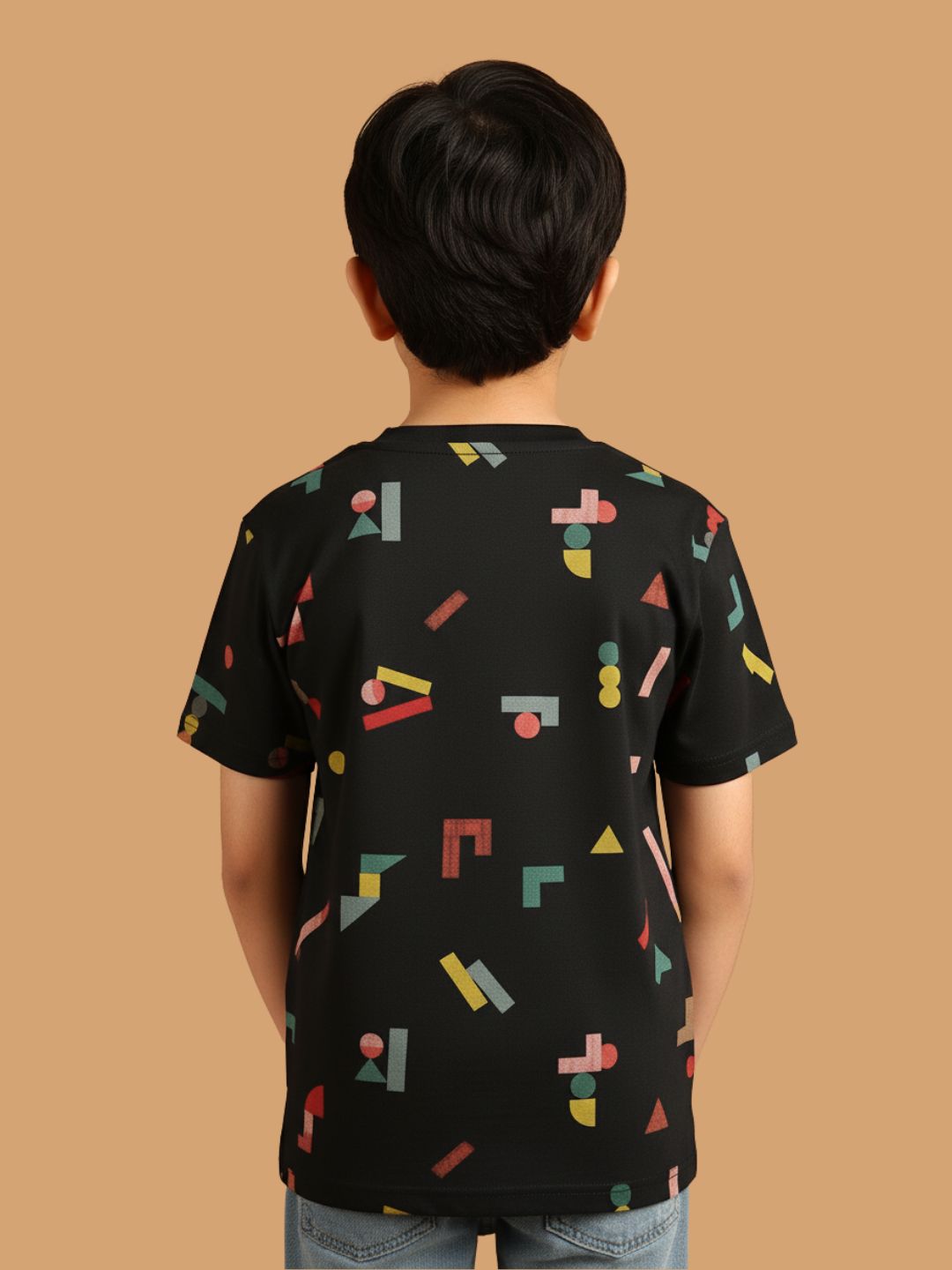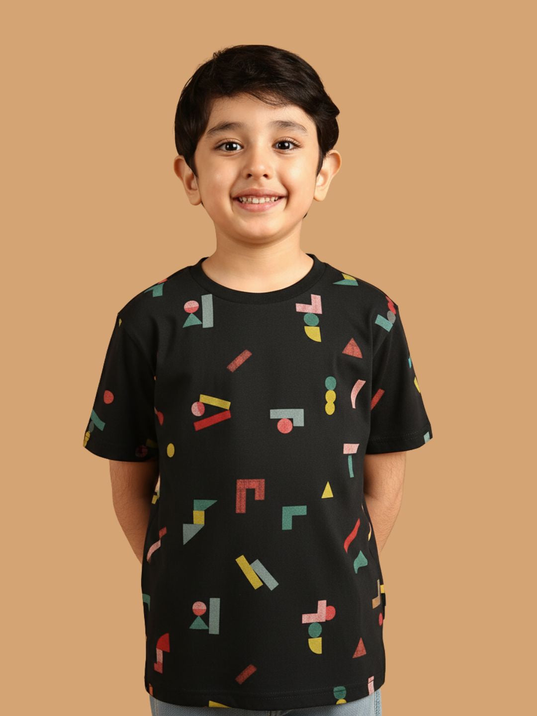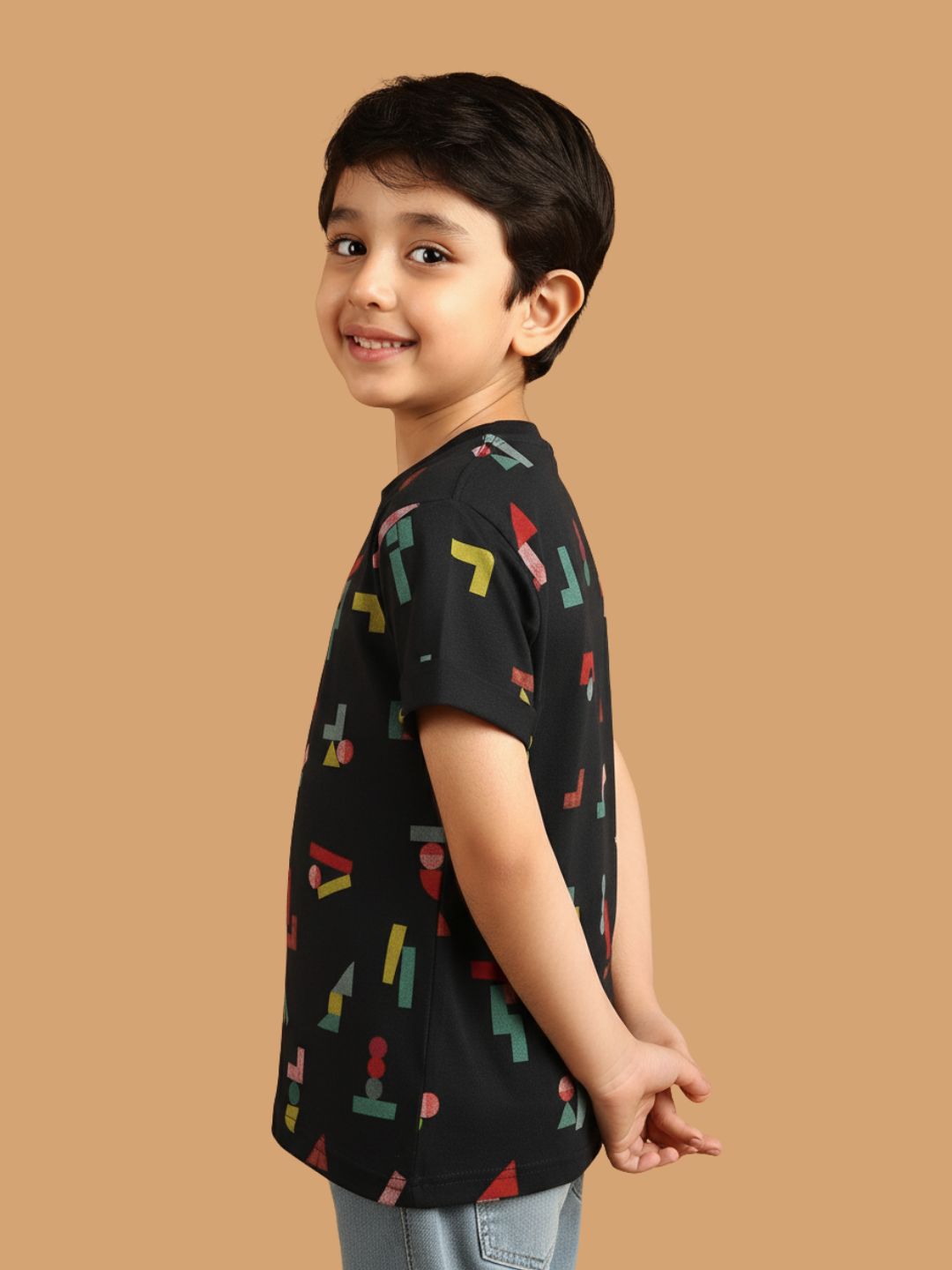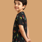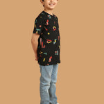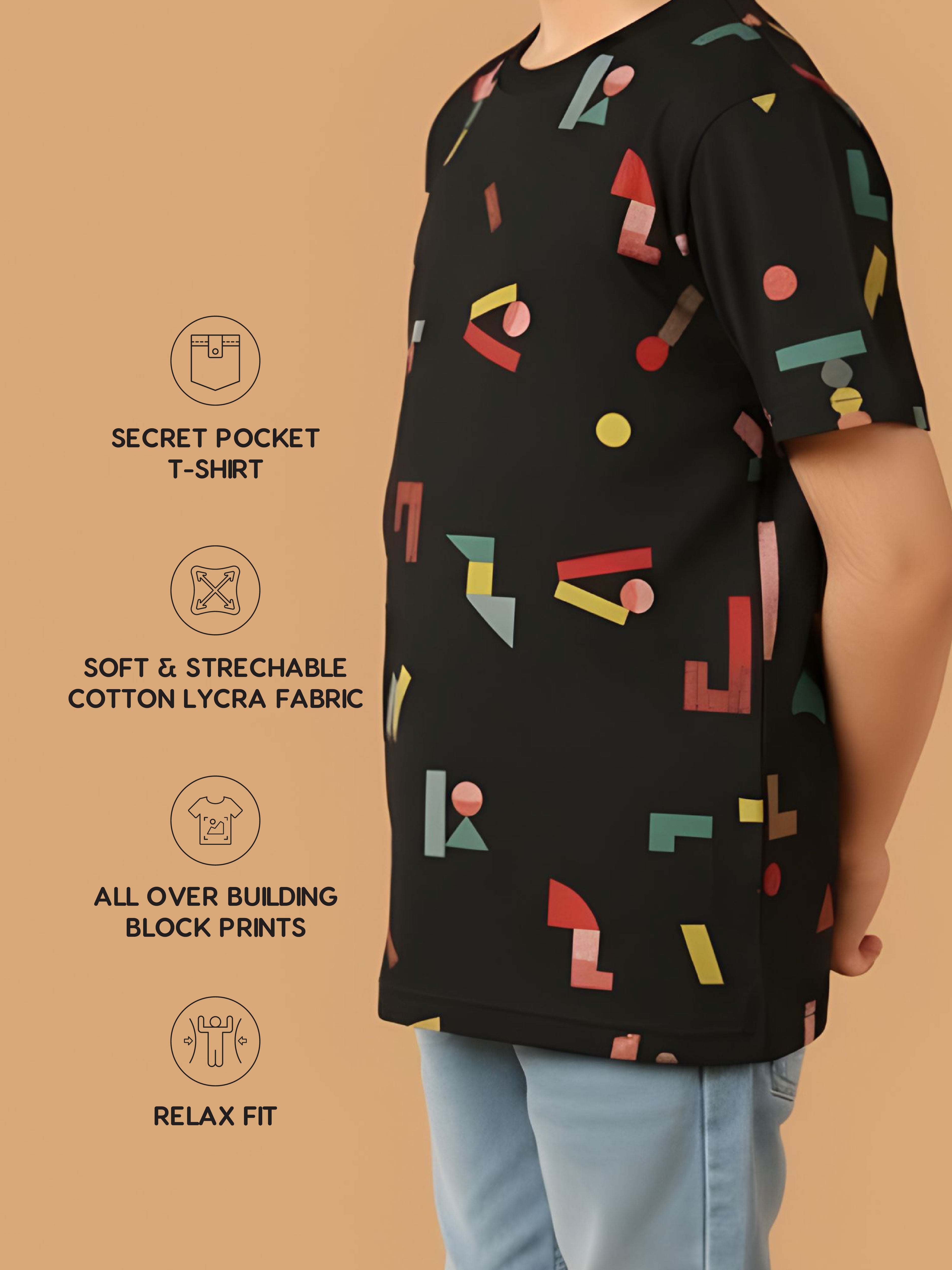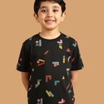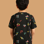 SKU: 088B - Pilolo Building Block It Up Navy Allover Printed Cotton Pocket T-Shirt For Boys