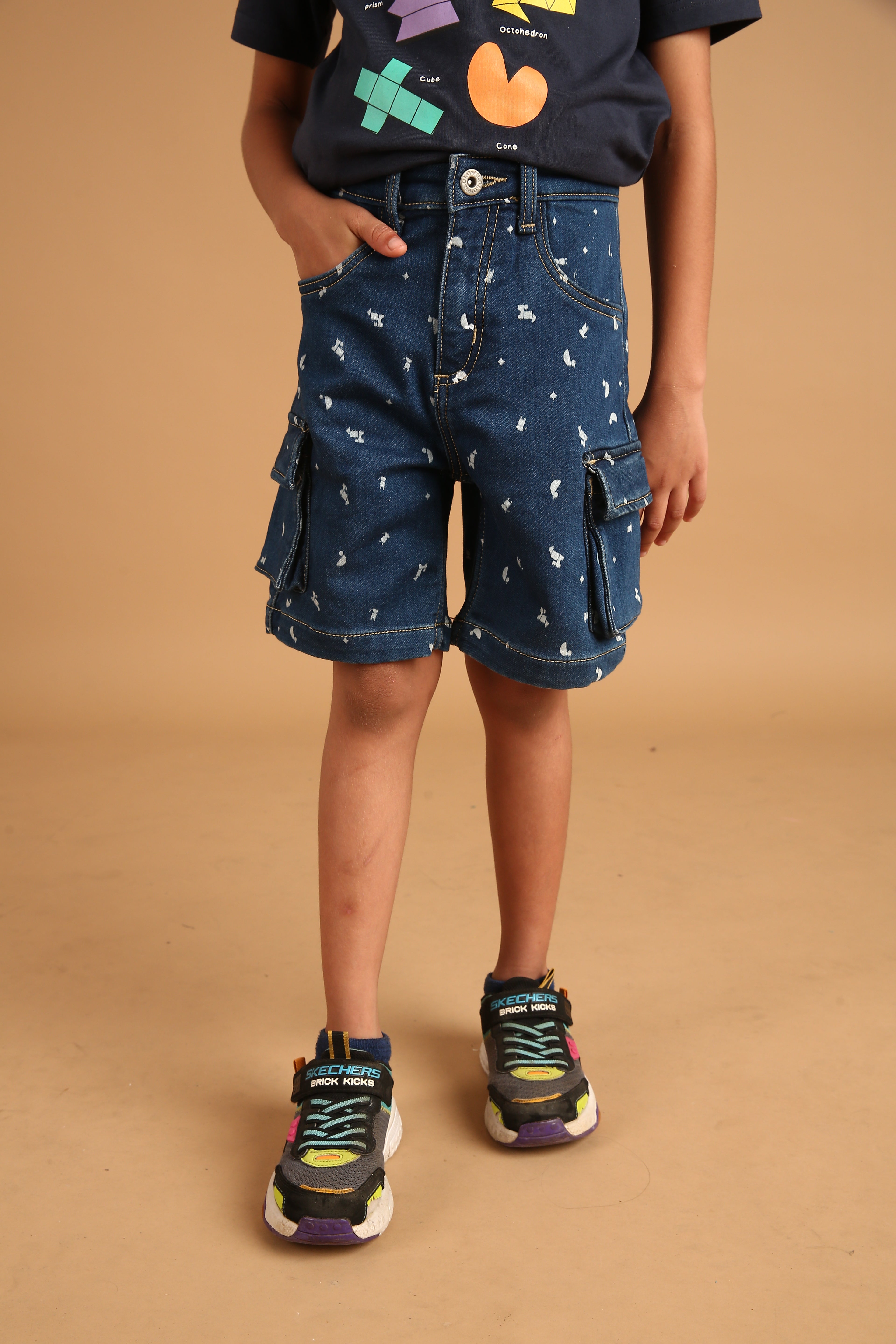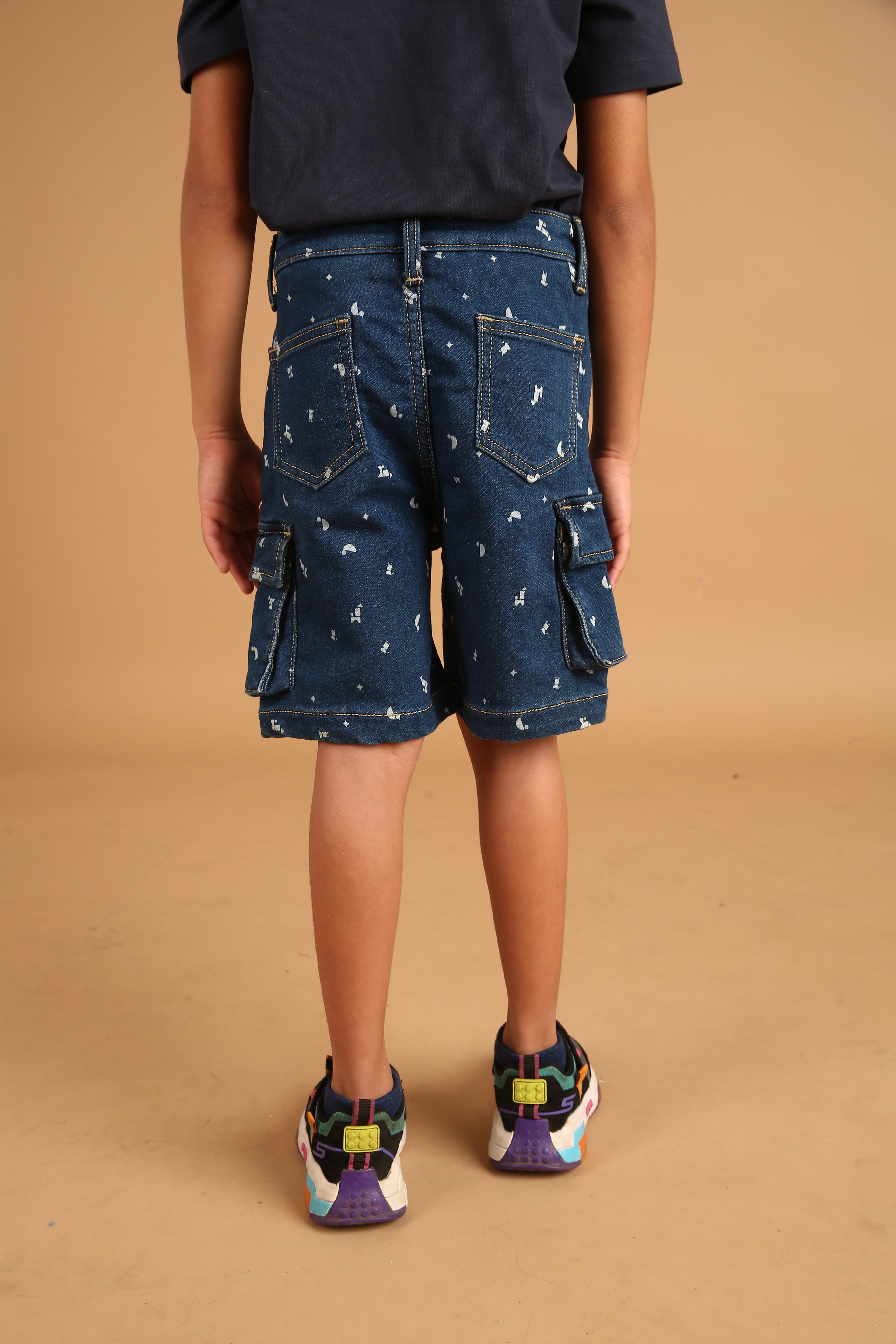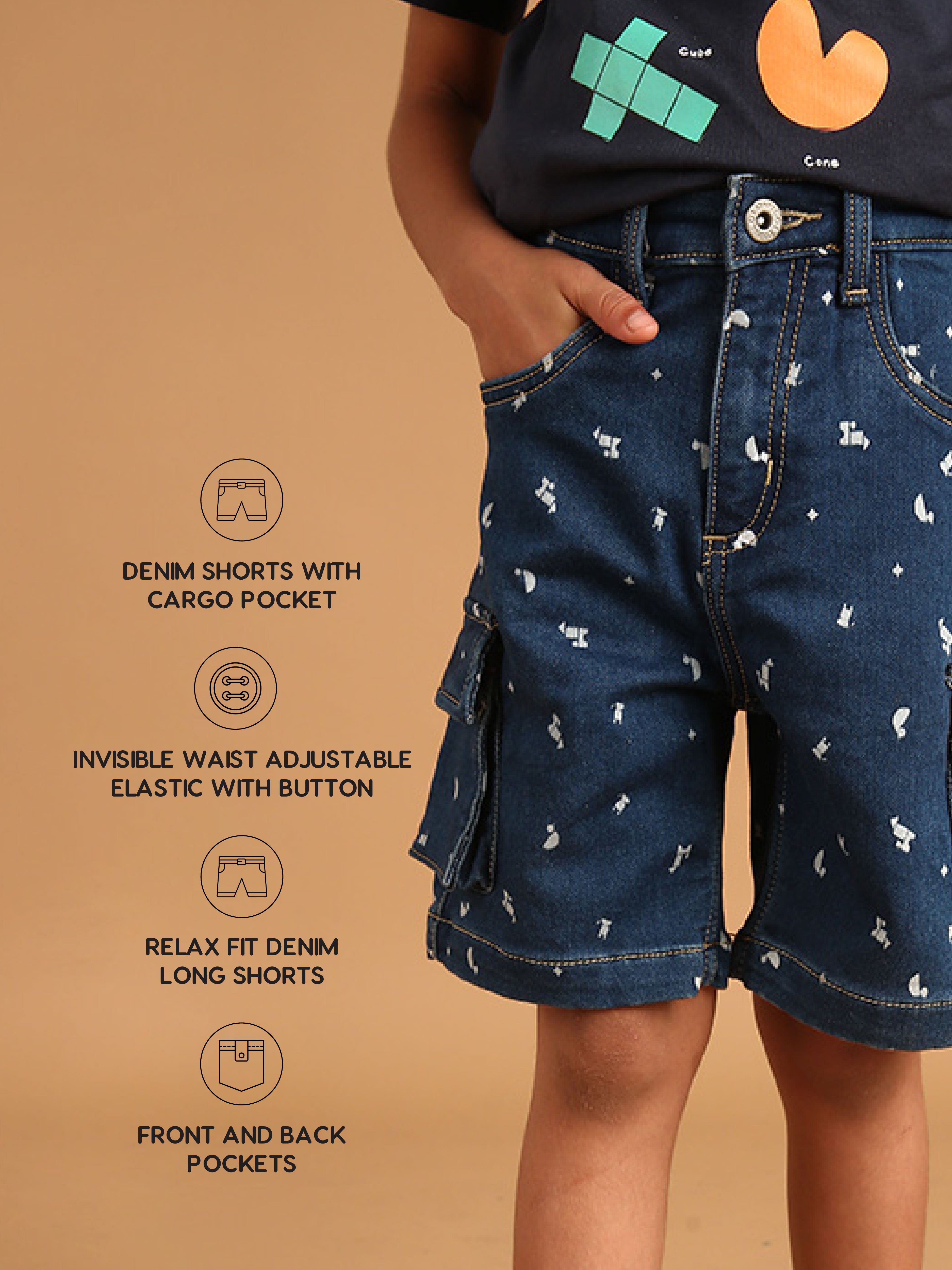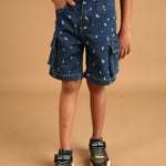 SKU: 100B - Pilolo Cargo Denim Builder Printed Shorts Ice Wash Color For Boys