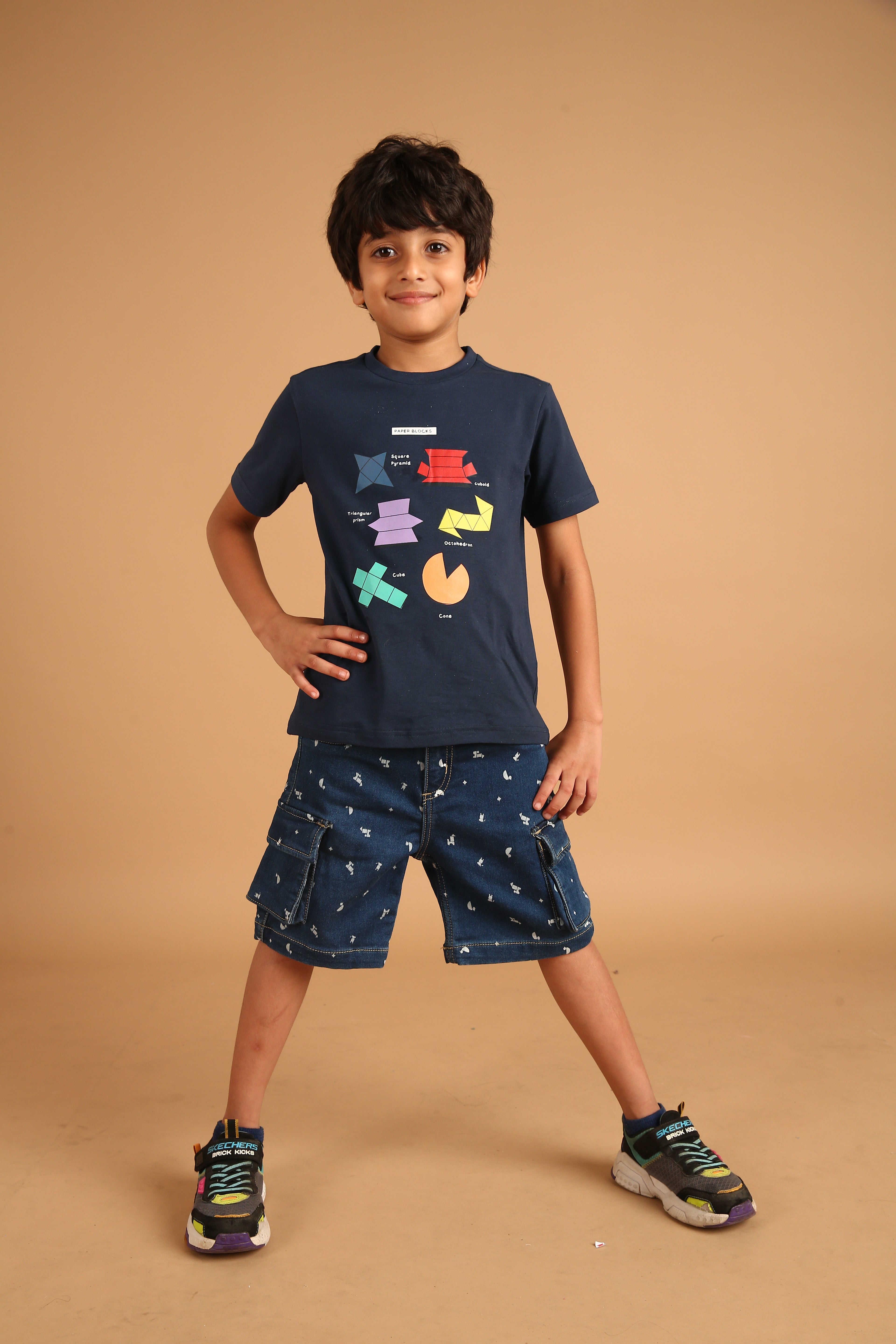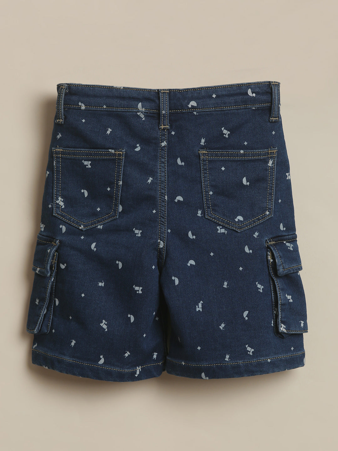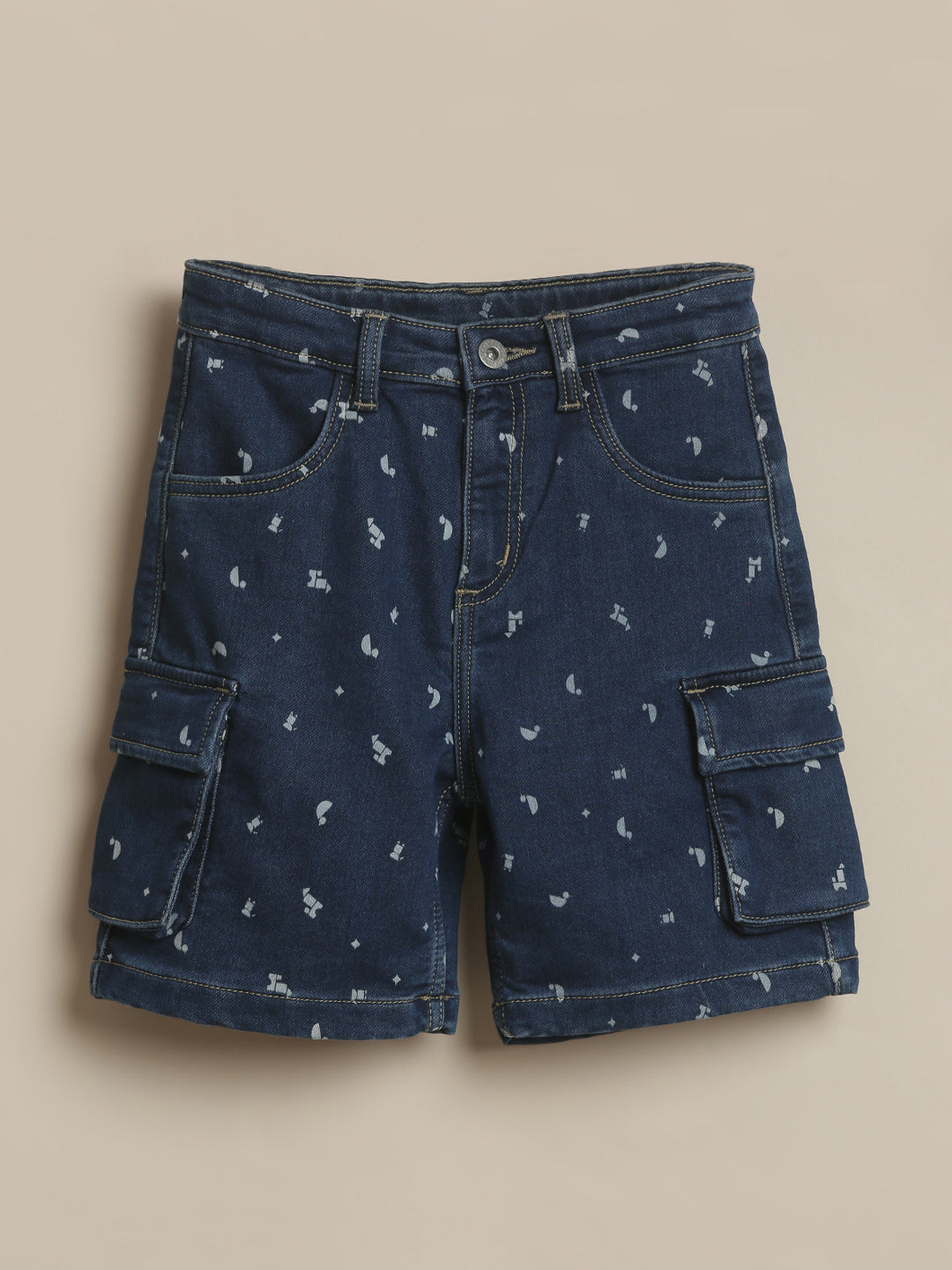 SKU: 100B - Pilolo Cargo Denim Builder Printed Shorts Ice Wash Color For Boys