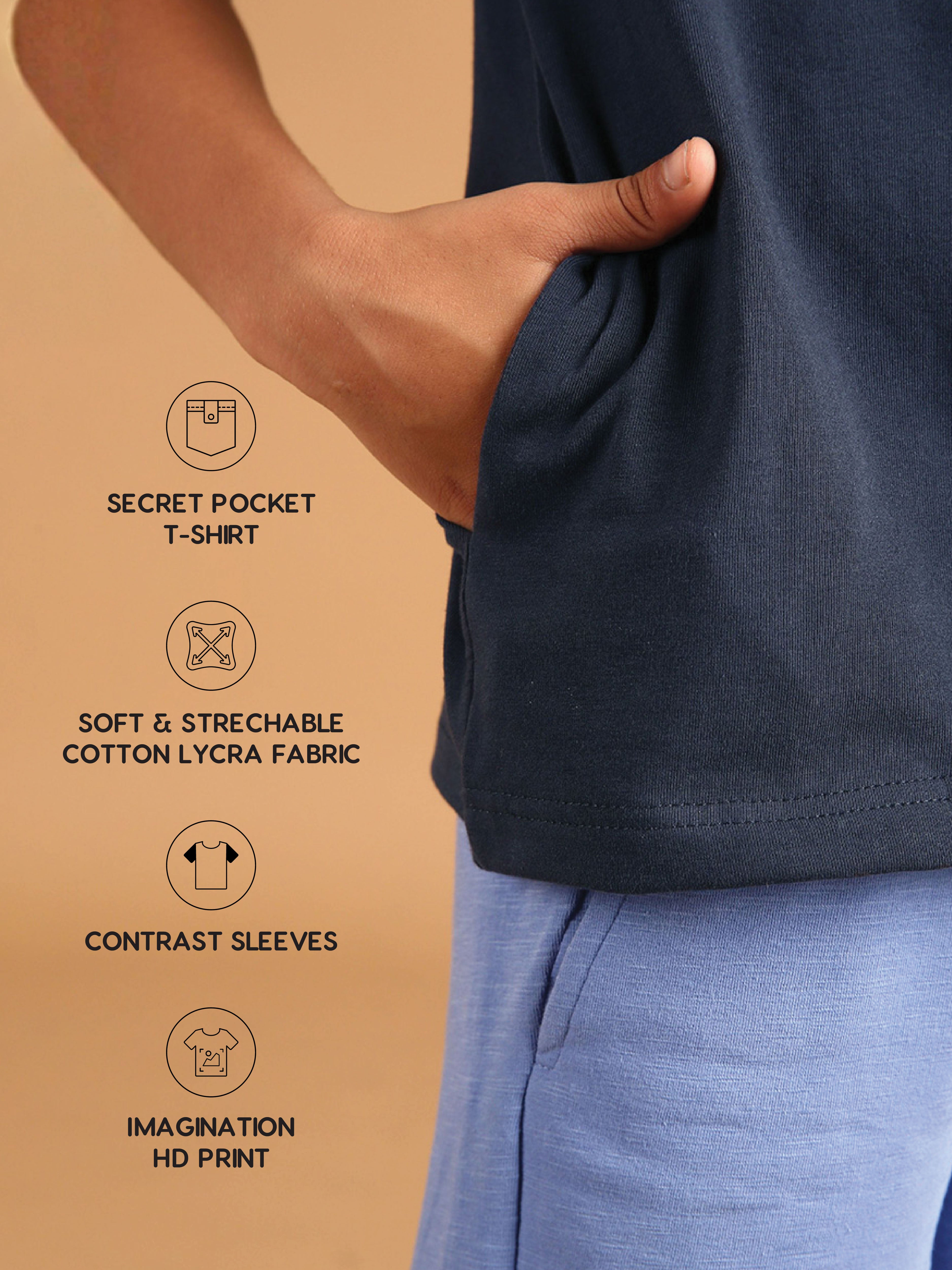 SKU: 082A - Pilolo Building Block Colorblock Imagination Outer Space Cotton Pocket T-Shirt For Boys