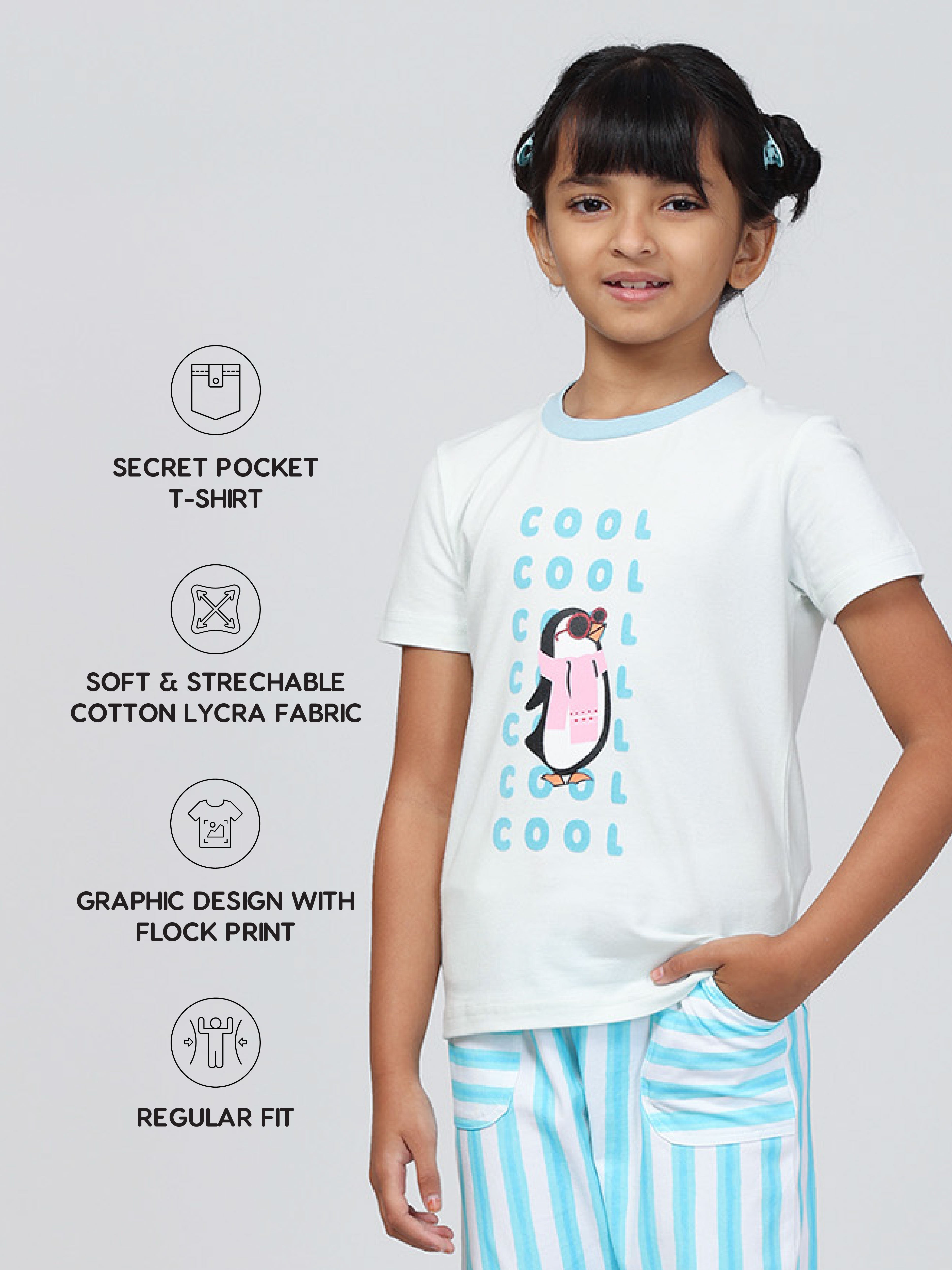 SKU: 056 - Pilolo Cool Penguin Cute Animal Designs, Printed, Soft & Comfortable Cotton Pocket T-Shirt For Girls