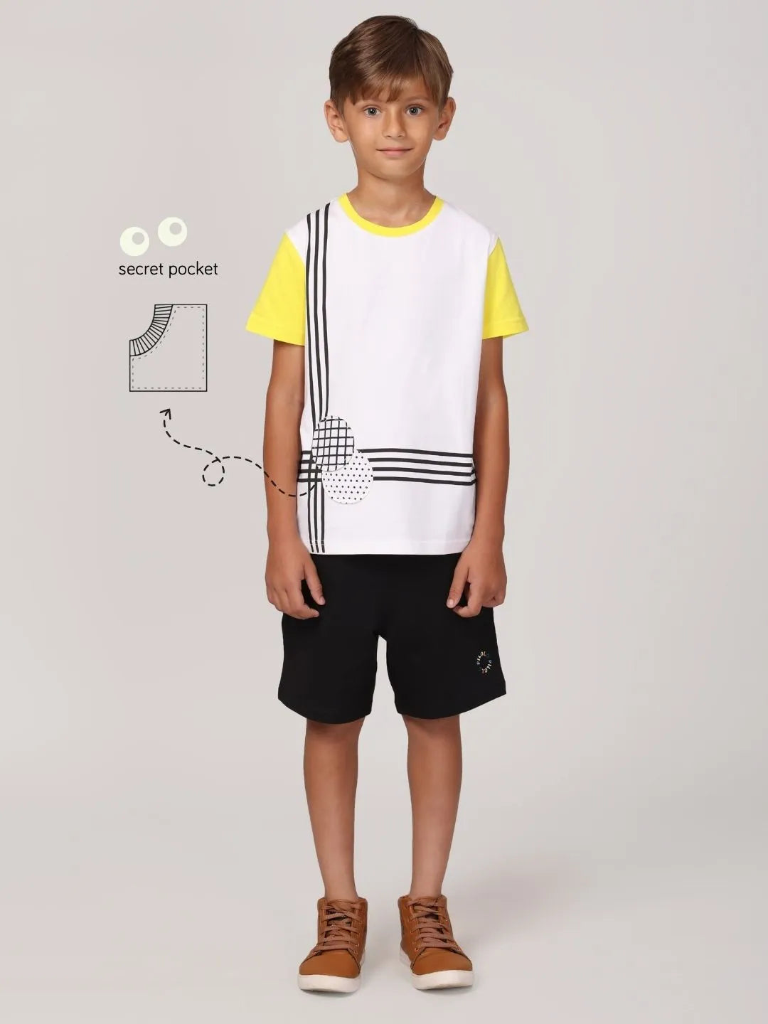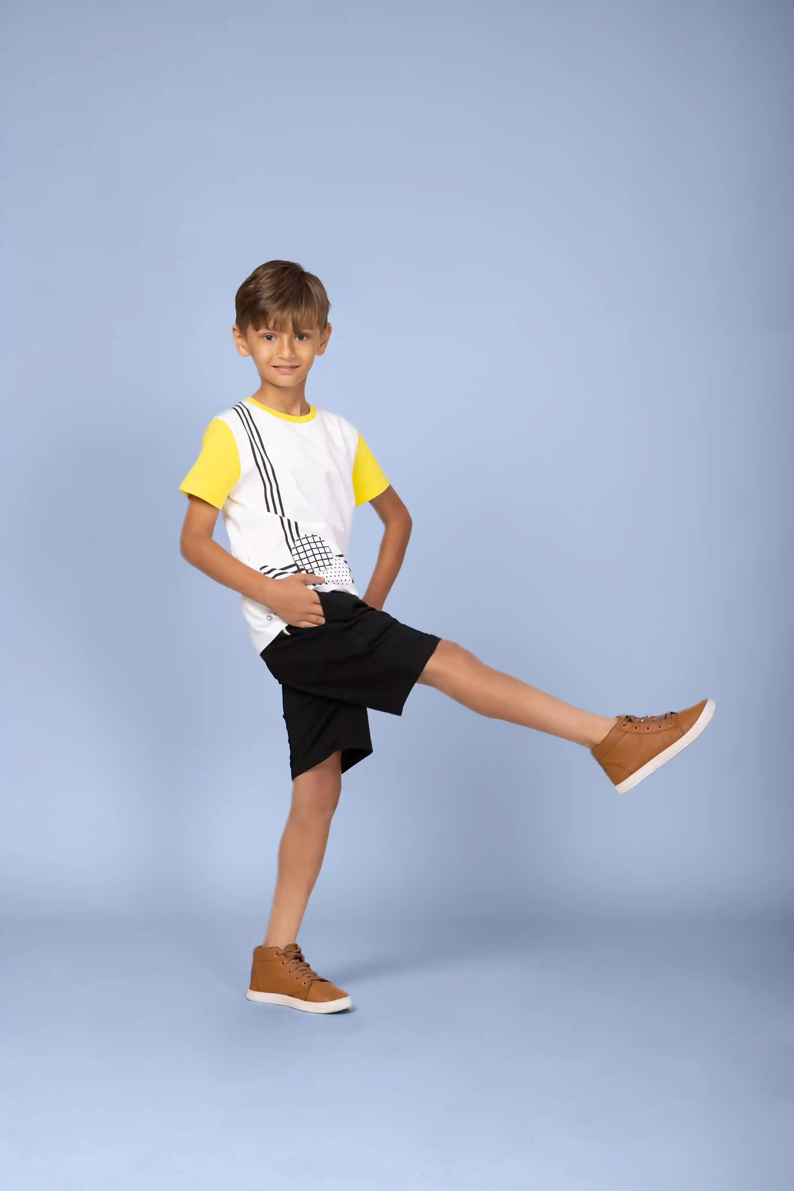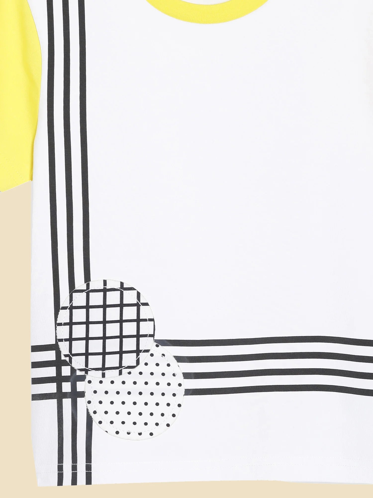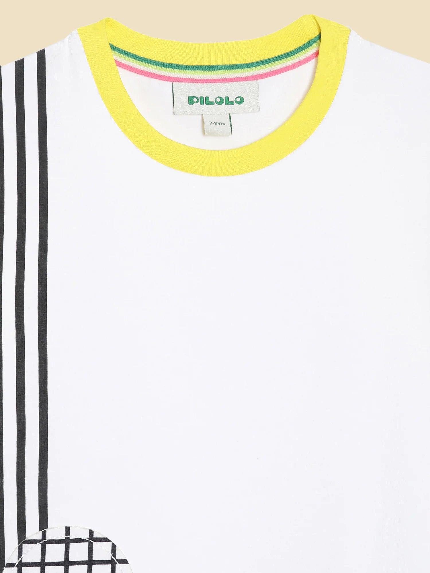 The Pilolo Crossroads T-shirt is a stylish and unique choice for your little boy's wardrobe. This white t-shirt features a contrasting design where stripes and polka dots intersect, creating a playful and eye-catching pattern. Designed for boys aged 4-9, this t-shirt is perfect for those who love to stand out with a fun and fashionable look. As with all Pilolo garments, this t-shirt includes our signature pocket, perfect for carrying tiny treasures and keeping them safe. Hidden inside is a surprise gift, making the Crossroads T-shirt even more special and exciting for your child. Crafted from a premium fabric blend of 95% cotton and 5% elastane, this t-shirt is soft, stretchy, and incredibly comfortable. The fabric is gentle on the skin, ensuring your child can move freely and comfortably throughout the day. Whether you're looking for a casual outfit that stands out, something unique for a day out, or a special gift, the Pilolo Crossroads T-shirt fits the bill. It also makes a perfect gift for birthdays, holidays, or any special occasion. Note: For the right fit, please refer to the size chart as sizes may vary from brand to brand.