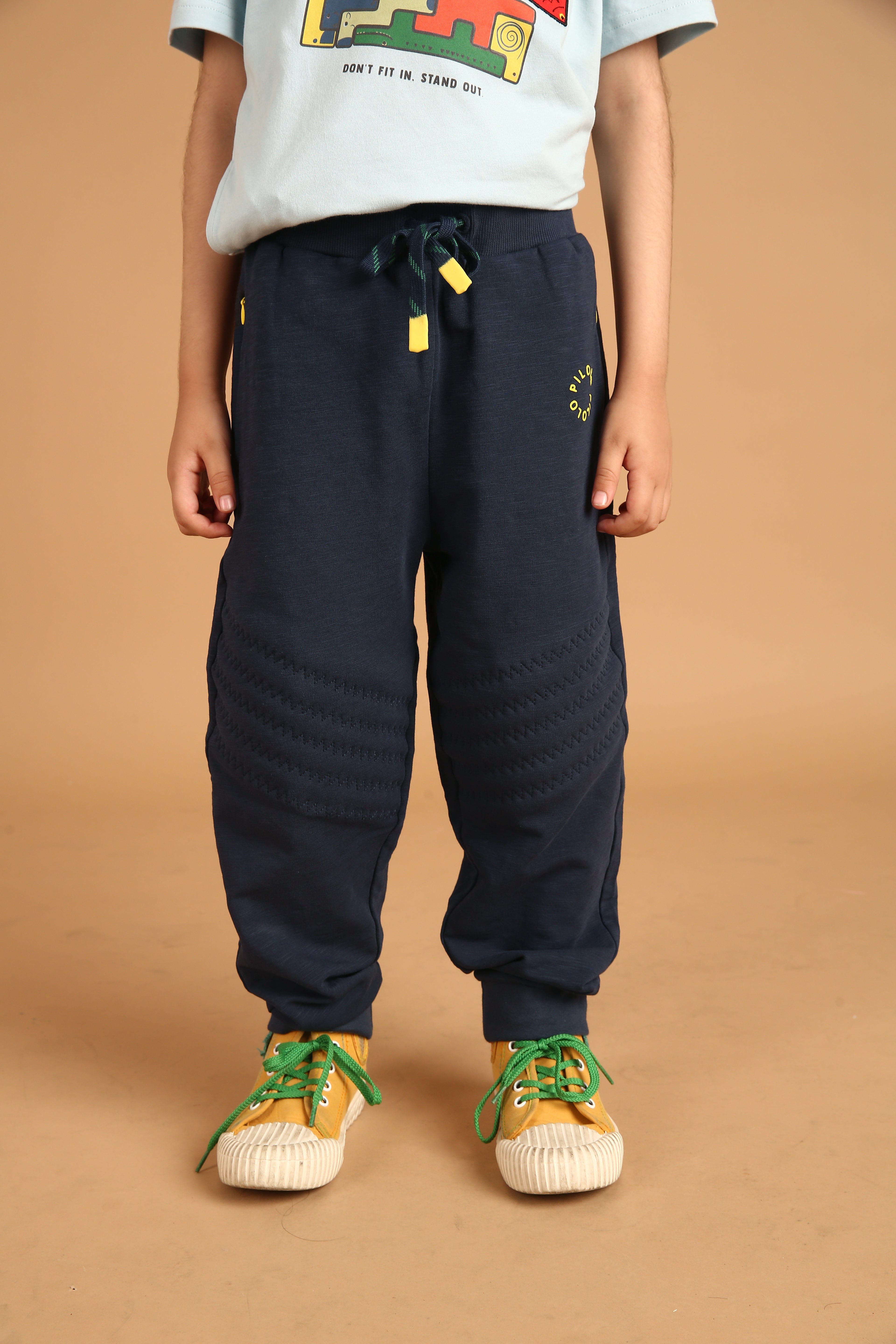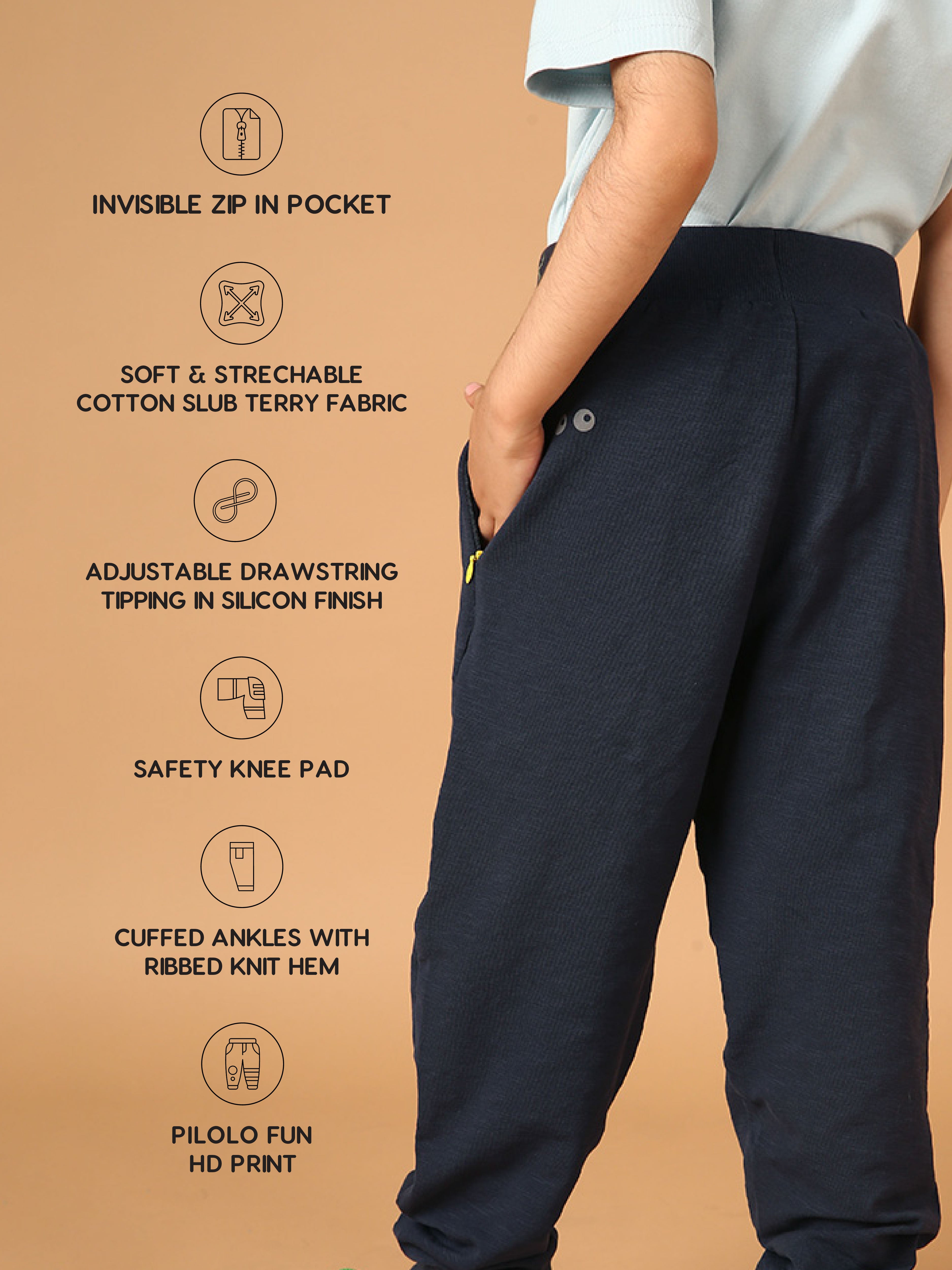 SKU: 097C - Pilolo Navy Knee Padded Safe Play Cotton Zipper Pocket Joggers For Boys