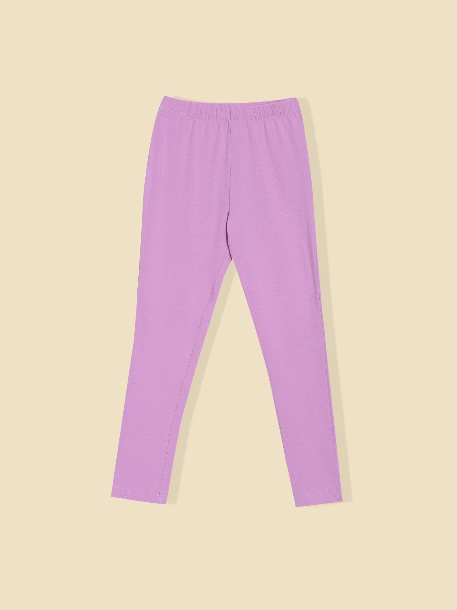 SKU: 052C - Pilolo Soft Cotton Solid Ankle Length Violet Pocket Leggings For Girls